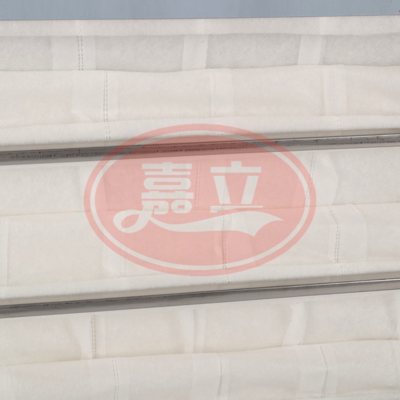 3、性能稳定。本公司生产袋式过滤器的化纤滤料上不带静电,过滤指标中也就没有因静电暂时增强的成分。只要滤料不